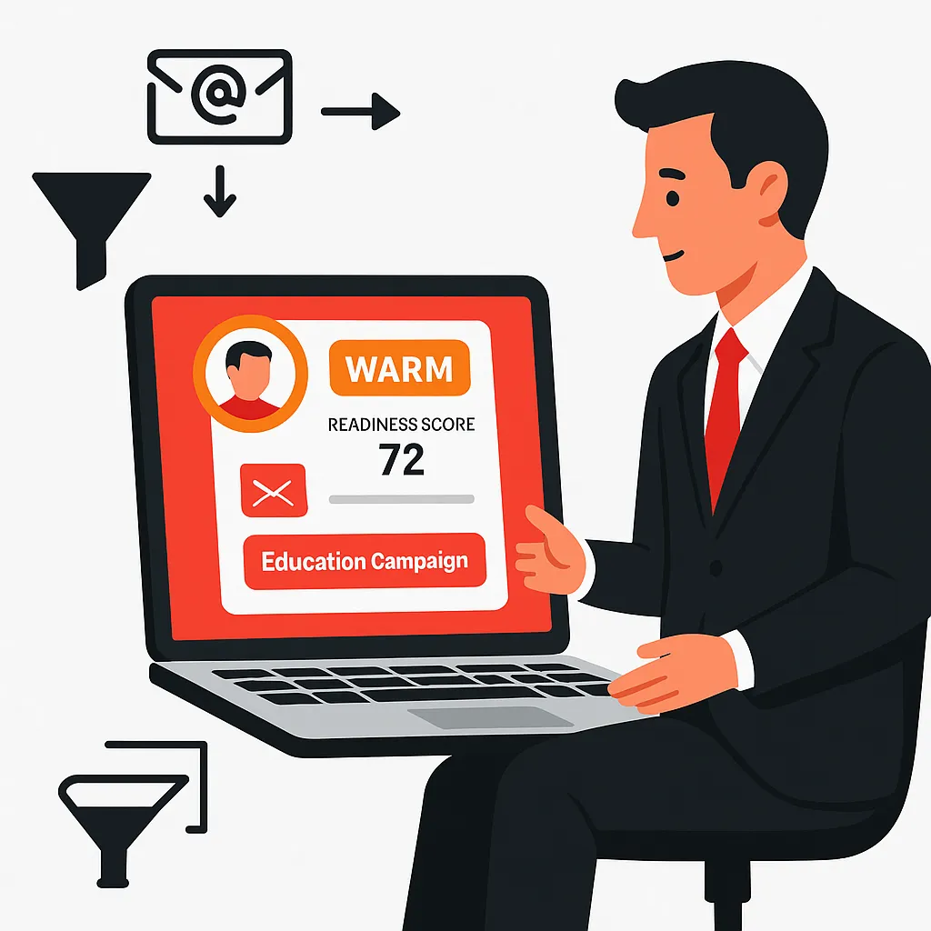 Survey logic + scoring system tags each seller by timing and motivation. You’ll know in seconds whether they’re ready now, preparing for later, or just exploring.